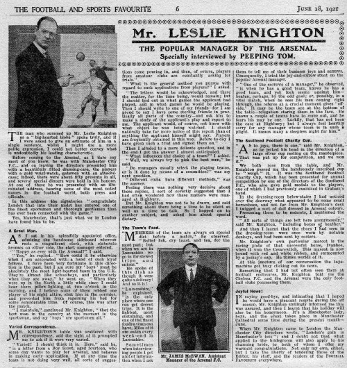 So let us consider Knighton’s career thus far. He was caretaker manager of Huddersfield Town in 1912, and thereafter assistant manager at Manchester City from 1909 to 1912 and then again from 1912 until 1919 when he signed for Arsenal.